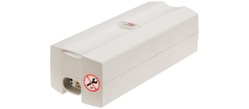 The rechargeable battery has a compact design with a robust housing that is easy to clean.